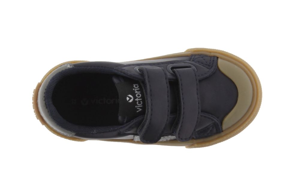 Παιδικά παπούτσια από vegan δέρμα. Με το λογότυπο Victoria στο πλάι. Καουτσούκ καπάκι και προφυλακτήρα και πρόσδεση velcro που διευκολύνει την εφαρμογή και ενθαρρύνει την ανεξαρτησία των μικρών.